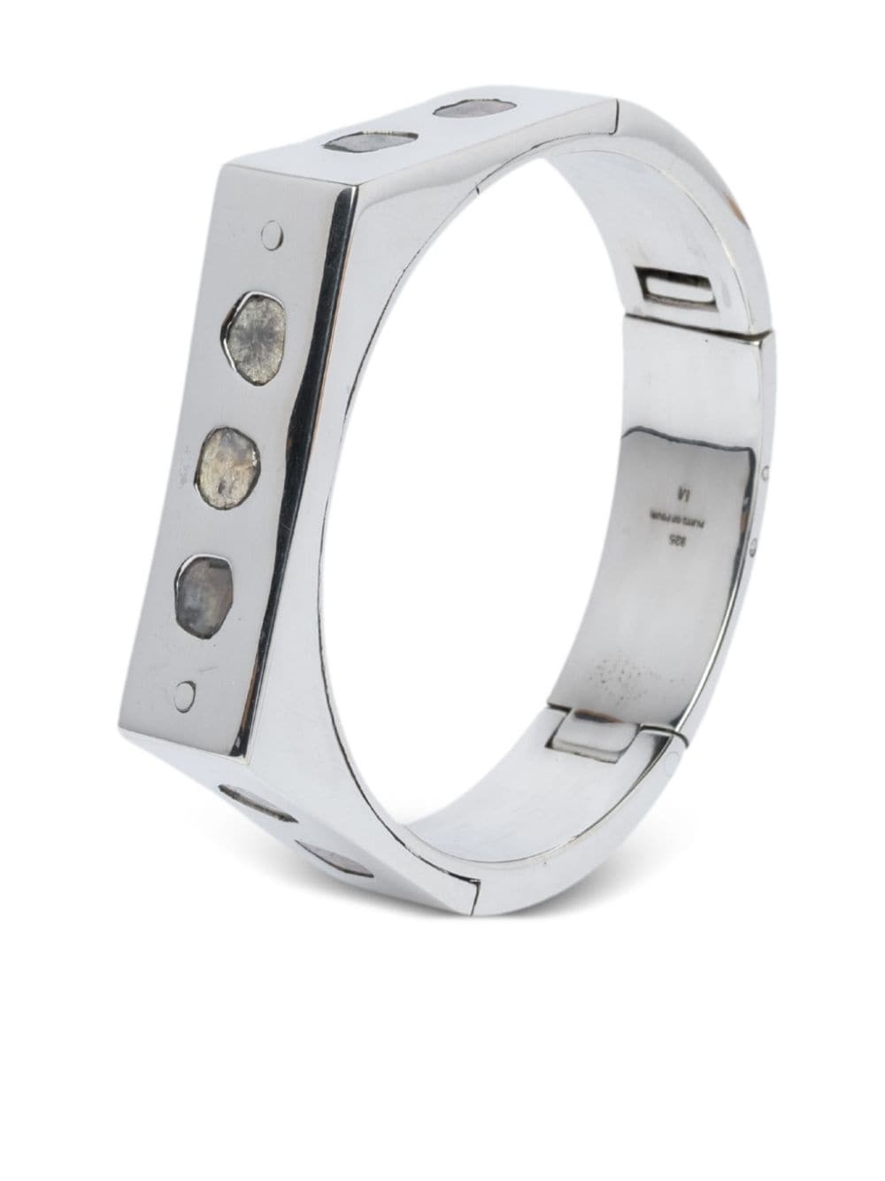 Sistema V2 diamond bracelet Highlights - Sterling silver - Polished finish - Faceted design - Flush setting - Rough diamonds - Engraved logo Imported SIZE & FIT Measurement CIRCUMFERENCE 7.08 in(18 cm) WIDTH 1.96 in(5 cm)