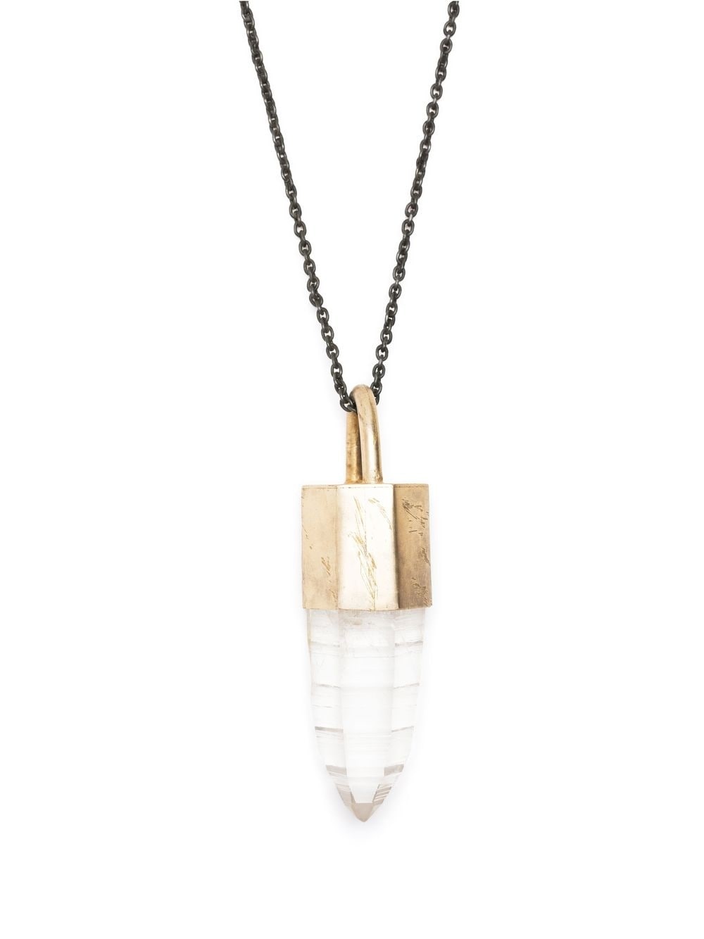 Talisman quartz pendant necklace jet black sterling silver gold plated quartz statement pendant rolo chain bar-pin fastening Imported SIZE & FIT Model measurements Height 6 ft 2 in(1.87 m) Bust/Chest 38.18 in(97 cm) Hips 36.61 in(93 cm) Waist 29.13 in(74 cm)