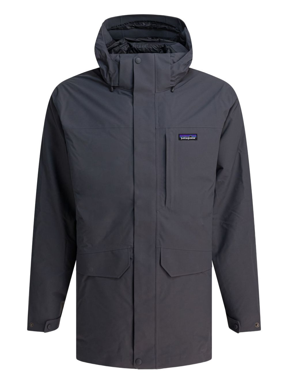 logo-patch padded coat Highlights - Grey - Padded - Snap button fastening - Flap pockets - Hooded neck - Logo patch Imported Composition Outer: Recycled Polyester 100% Lining: Recycled Polyester 100%, Recycled Down 100% Washing instructions Read Manufacturer Guidelines
