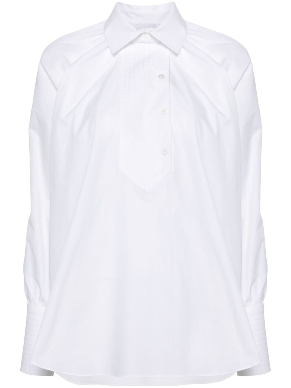 Artist cotton blouse Highlights - White - Cotton - Poplin texture - Decorative stitching - Gathered detailing - Classic collar - Long sleeves - Buttoned cuffs - Curved hem - Front button placket Imported Composition Cotton 100% SIZE & FIT Model measurements Height 5 ft 9 in(1.76 m) Bust/Chest 31.88 in(81 cm) Hips 35.43 in(90 cm) Waist 24.8 in(63 cm) FittingInformation Designed to be unstructured, offering a loose fit throughout Made from a midweight non-stretch fabric This piece fits true to size – take your usual size Washing instructions Machine Wash