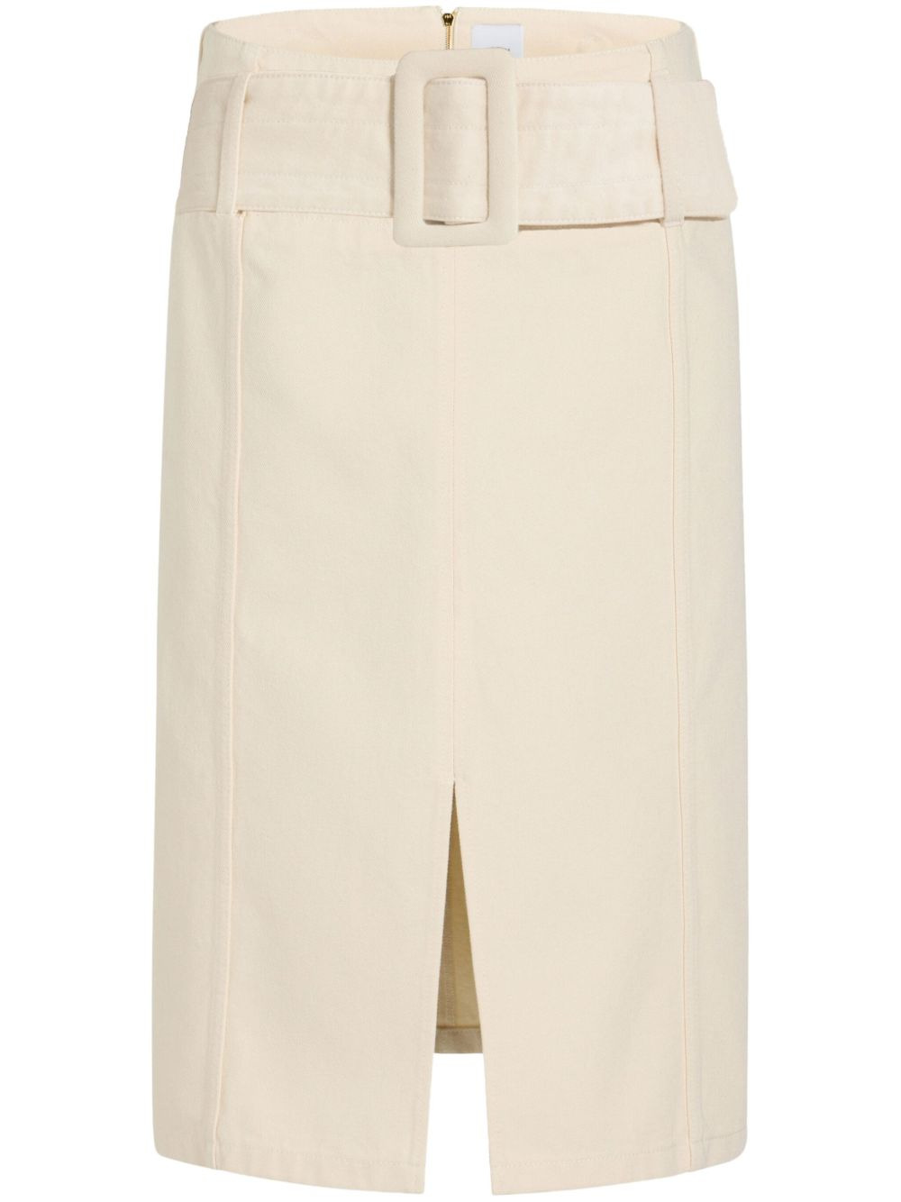 belted denim midi skirt Highlights - Light beige - Front buckle fastening - Front slit - Straight hem - Mid-length Imported Composition Organic Cotton 100%