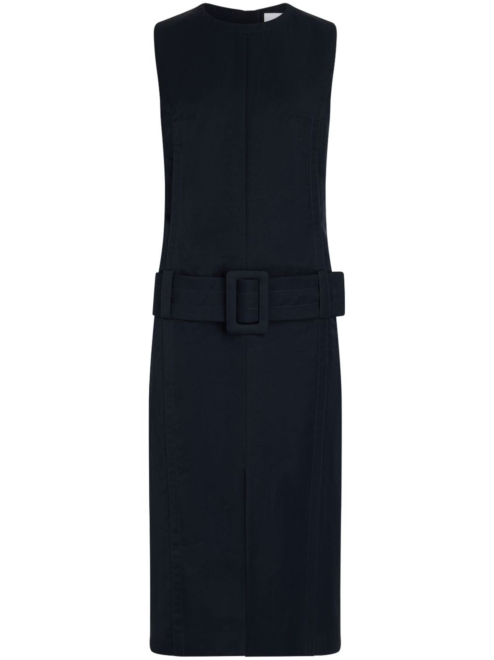 belted midi dress Highlights - Black - Rear zip fastening - Detachable and adjustable waist belt - Front slit - Round neck Imported Composition Lining: Viscose 100% Outer: Recycled Nylon 100%