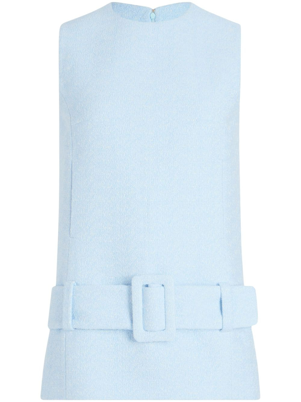 belted minidress Highlights - Light blue - Concealed rear zip fastening - Boucle design - Round neck - Sleeveless Imported Composition Outer: Organic Cotton 97%, Recycled Cotton 2%, Acrylic 1% Lining: Viscose 100%