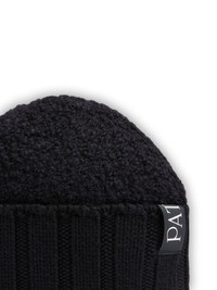 boucle ribbed beanie hat Highlights - Black - Boucle construction - Ribbed trim - Logo label - Folded brim Imported Composition Recycled Polyester 100%, Merino 100%, Alpaca Wool 100% Washing instructions Hand Wash
