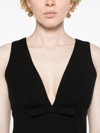bow-detail midi dress Highlights - Black - Crepe texture - Bow detailing - Gathered neckline - V-neck - Sleeveless - Concealed side zip fastening - Straight hem - Mid-length Imported Composition Viscose 59%, Cotton 40%, Elastane 1% SIZE & FIT Model measurements Height 5 ft 9 in(1.75 m) Bust/Chest 34.64 in(88 cm) Hips 36.61 in(93 cm) Waist 26.37 in(67 cm) FittingInformation Designed for a slim fit that sits just away from the body offering a close yet comfortable fit Made from a midweight stretch fabric, this piece offers elasticity and flexibility when worn This piece fits true to size – take your usual size