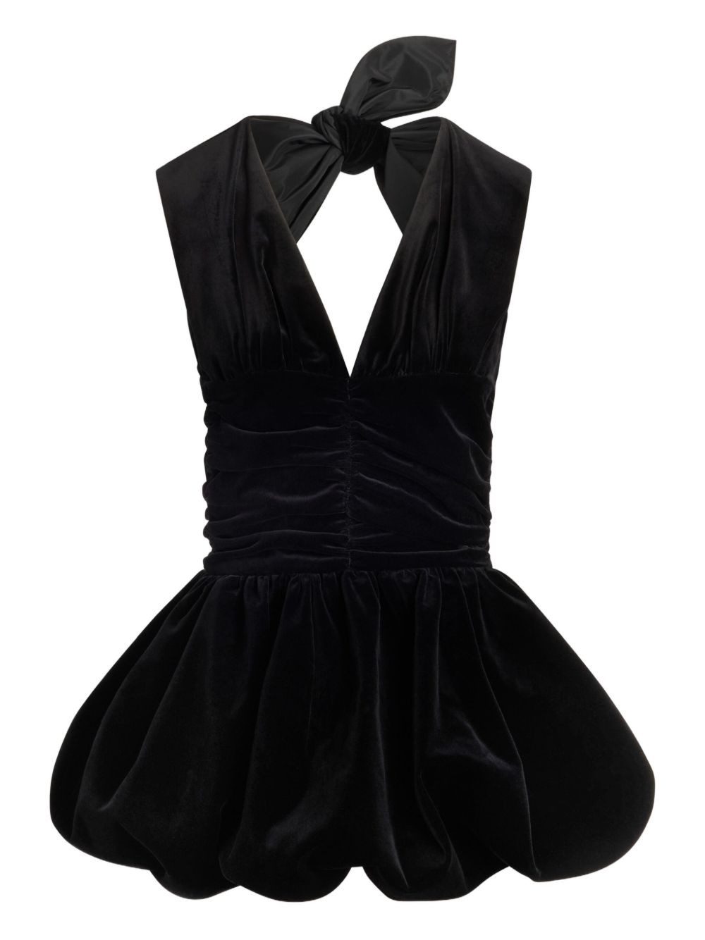 bow-detail velvet mini dress Highlights - Black - Velvet fabric - Halterneck design - Bow detail - Gathered skirt - Sleeveless Imported Composition Lining: Viscose 100% Organic Cotton 100% Washing instructions Read Manufacturer Guidelines
