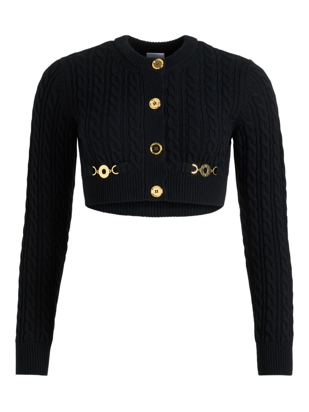cable-knit buttoned cardigan Highlights - Black - Cable knit - Gold-tone buttons - Long sleeves - Cropped length - Gold-tone metal embellishments Imported Composition Merino 100%, Cashmere 100% Washing instructions Read Manufacturer Guidelines