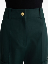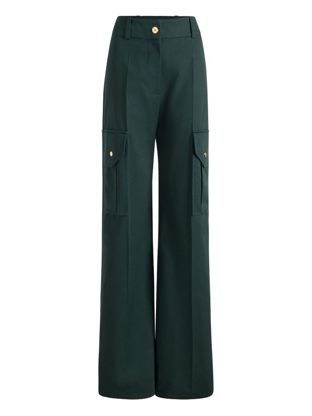 cargo pocket trousers Highlights - Dark green - Organic cotton gabardine - Side cargo pockets - Gold button fastening - Straight leg - High waist Imported Composition Outer: Organic Cotton 100% Lining: Viscose 100% Washing instructions Dry Clean Only