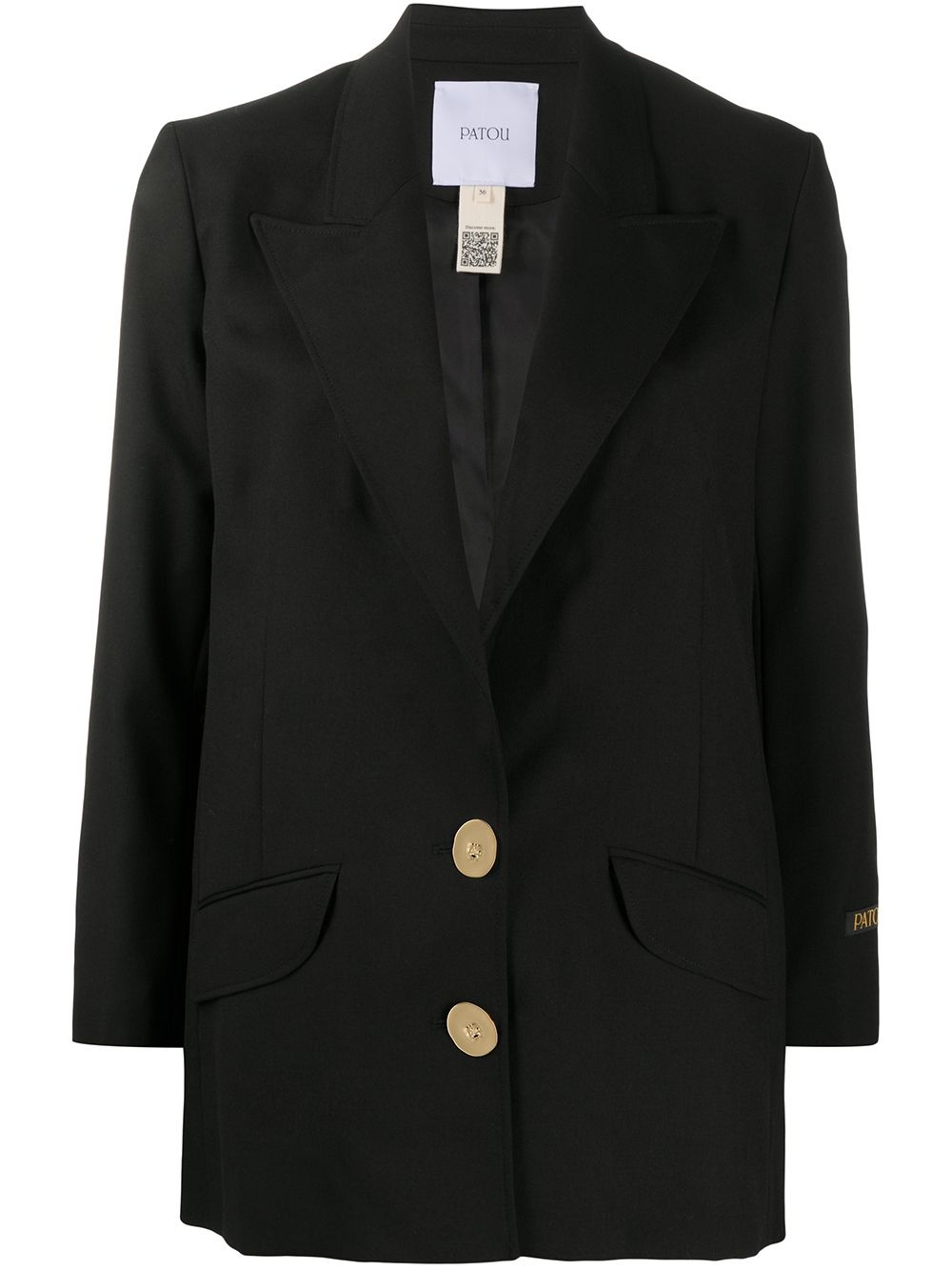jewel-button wool blazer Highlights - Black - Virgin wool - Wide notch lapels - Front button fastening - Front flap pockets - Gold-tone hardware - Central rear vent Imported Composition Virgin Wool 100% SIZE & FIT Model measurements Height 5 ft 10 in(1.78 m) Bust/Chest 31.49 in(80 cm) Hips 36.22 in(92 cm) Waist 25.59 in(65 cm) FittingInformation This piece fits true to size. We recommend you get your regular size Cut for a loose fit Made with a mid-weight non-stretch fabric Washing instructions Dry Clean Only