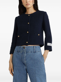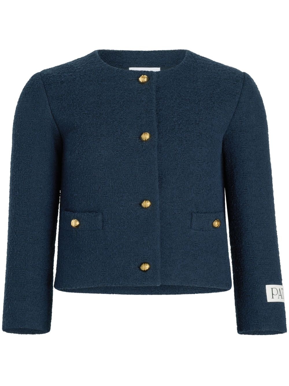 collarless blazer Highlights - Teal blue - Front button fastening - Boucle design - Logo tag - Faux pocket detail Imported Composition Outer: Organic Cotton 100% Lining: Viscose 100%