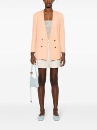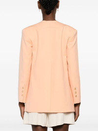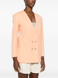 collarless double-breasted blazer Highlights - Light orange - Virgin wool blend - Twill weave - Collarless - V-neck - Shoulder pads - Chest welt pocket - Long sleeves with buttoned cuffs - Logo patch at the sleeve - Dart detailing - Two side patch pockets - English rear vents - Authenticity qr code - Full lining - Straight hem - Gold-tone buttons - Double-breasted button fastening Imported Composition Virgin Wool 97%, Elastane 3% SIZE & FIT Model measurements Height 5 ft 10 in(1.77 m) Bust/Chest 29.92 in(76 cm) Hips 34.25 in(87 cm) Waist 23.62 in(60 cm) FittingInformation Designed to be unstructured, offering a loose fit throughout The internal shoulder pads offer a structured shape Made from a midweight fabric This piece fits true to size – take your usual size