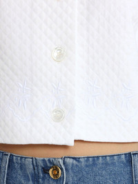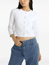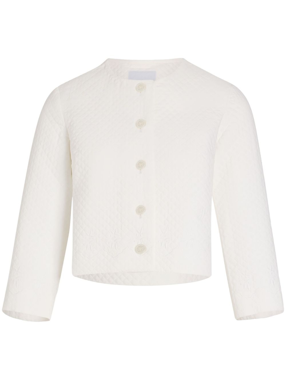 collarless quilted jacket Highlights - White - Front button fastening - Three-quarter length sleeves - Cropped - To ensure that this piece can accompany you throughout your life, we kindly ask you not to fold it. Imported Composition Outer: Viscose 100% Lining: Cotton 100%