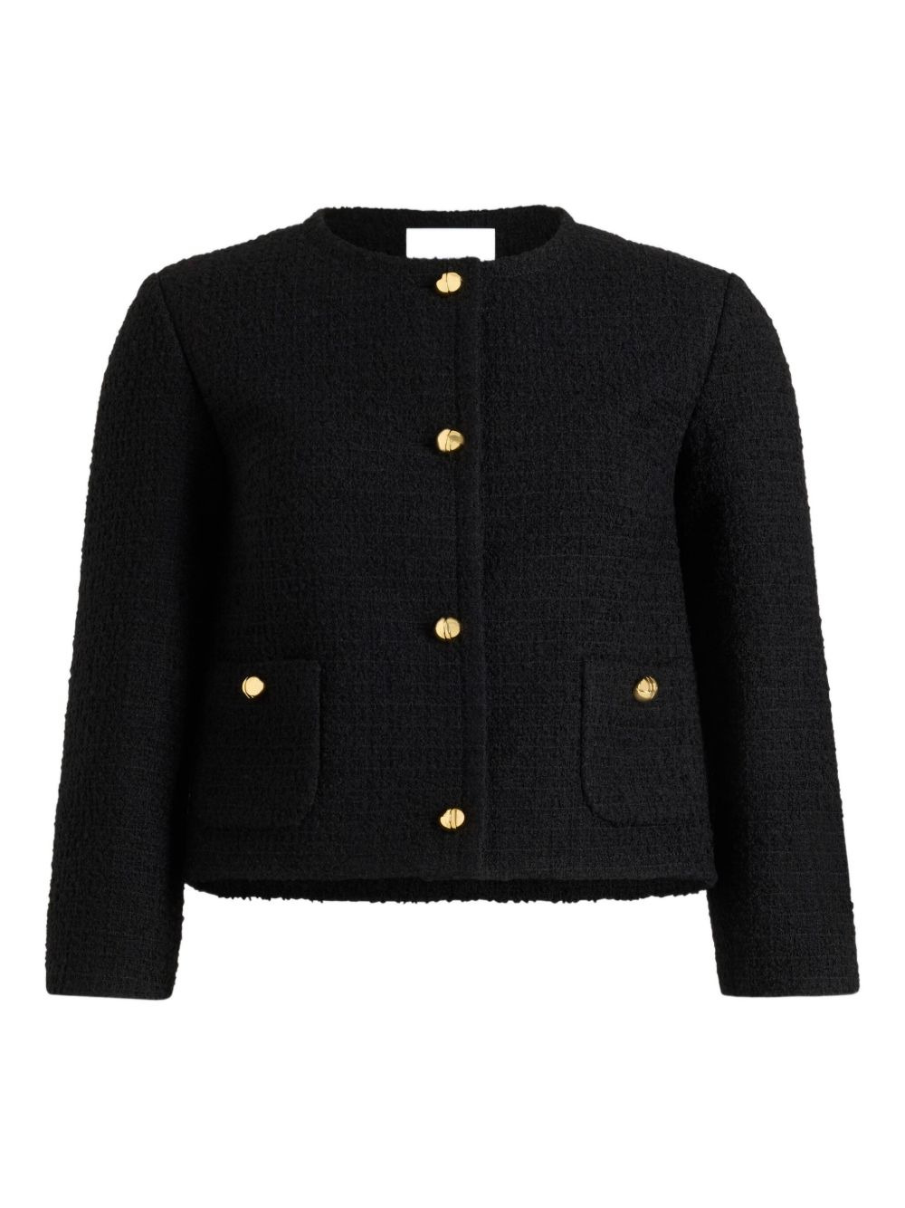 collarless tweed jacket Highlights - Black - Tweed - Gold-tone buttons - Patch pockets - Round neck - Three-quarter sleeves Imported Composition Outer: RWS Virgin Wool 100% Lining: Viscose 100% Washing instructions Dry Clean Only