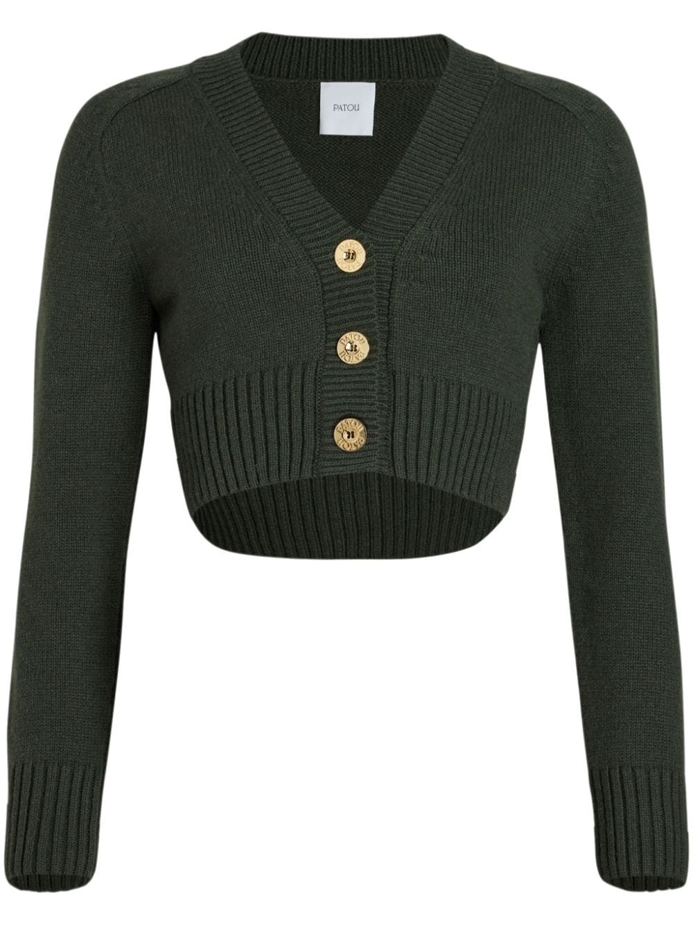 cropped cardigan Highlights - Green - Wool - Ribbed v-neck - Cropped - Button fastening - Long sleeves - Ribbed cuffs and hem Imported Composition Wool 100%