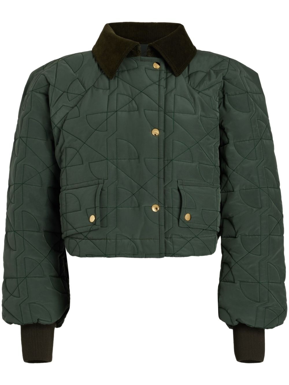 cropped quilted bomber jacket Highlights - Moss green - Recycled nylon - Quilted - Gold-tone buttons - Spread collar - Front button and zip fastening - Long sleeves - Elasticated cuffs - Two side flap pockets - Cropped Imported Composition Recycled Nylon 100%