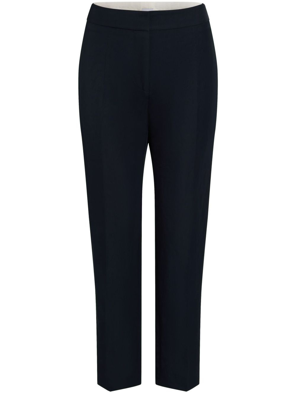 cropped tailored trousers Highlights - Navy blue - Concealed front fastening - Two side slit pockets - Pressed crease Imported Composition Outer: Polyamide 100% Lining: Viscose 100%