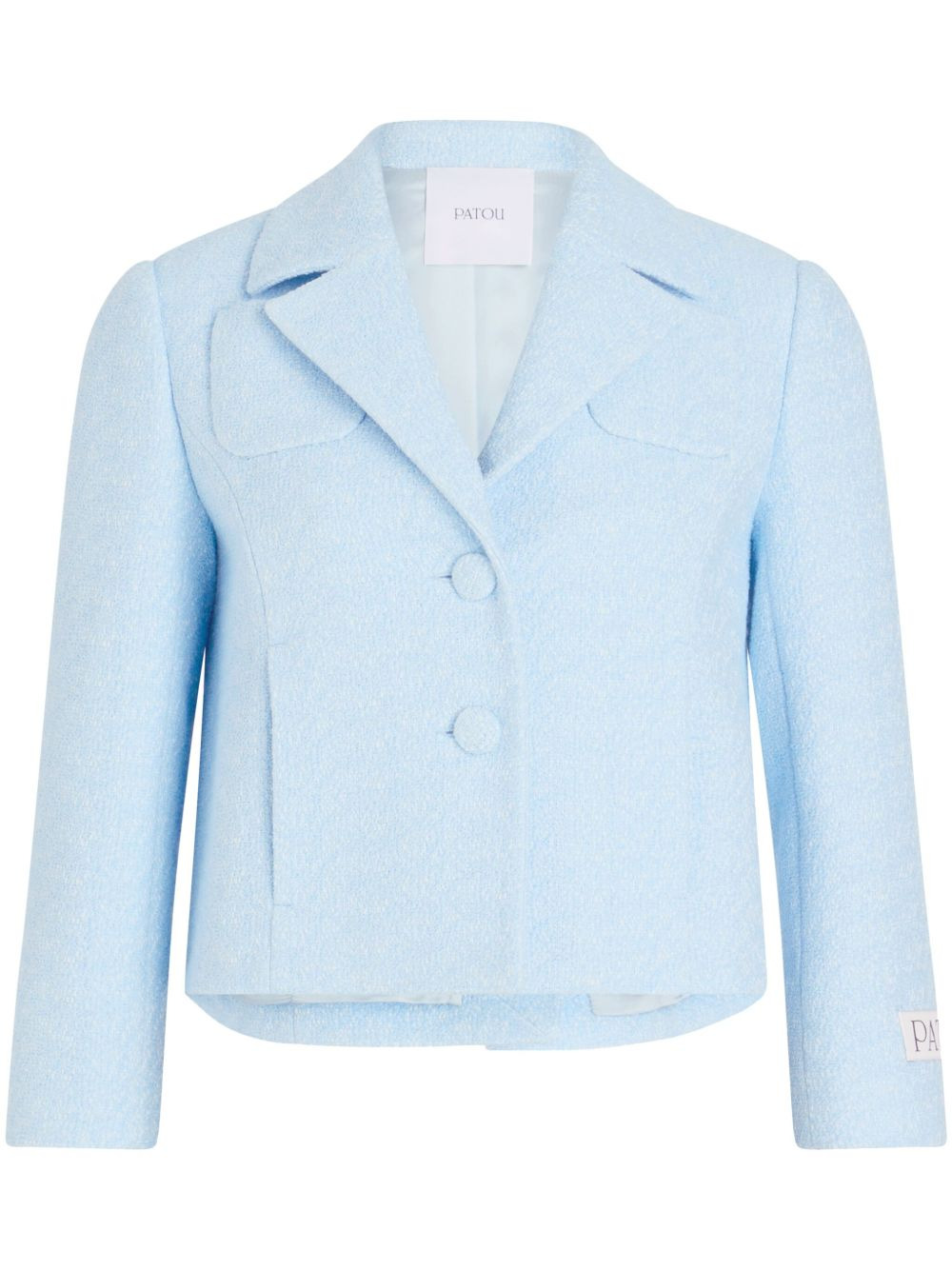 cropped tweed jacket Highlights - Light blue - Front button fastening - Chest patch pocket - Two side slit pockets - Buttoned cuffs Imported Composition Outer: Organic Cotton 100% Lining: Viscose 100%