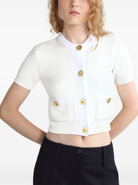 cropped waffle-knit cardigan Highlights - White - Front button fastening - Two front patch pockets - Round neck - Short sleeves Imported Composition Organic Cotton 100%