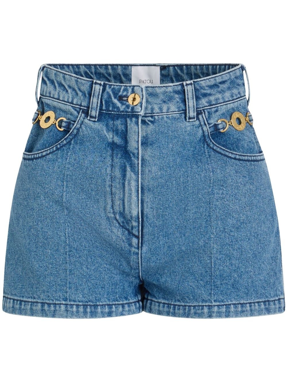denim mini shorts Highlights - Blue - Concealed fly and button fastening - High-rise - Two rounded pockets to the sides - Logo-engraved gold-tone hardware Imported Composition Organic Cotton 100%