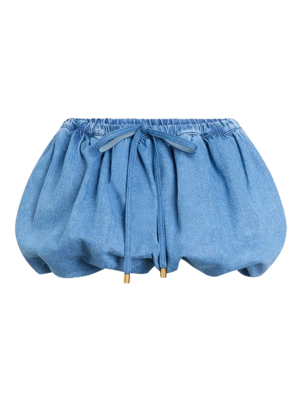 drawstrings mini A-line skirt Highlights - Blue - Drawstring fastening - Elasticated waistband - Mini lenght Imported Composition Outer: Cotton 72%, Viscose 28% Lining: Viscose 100% Washing instructions Machine Wash