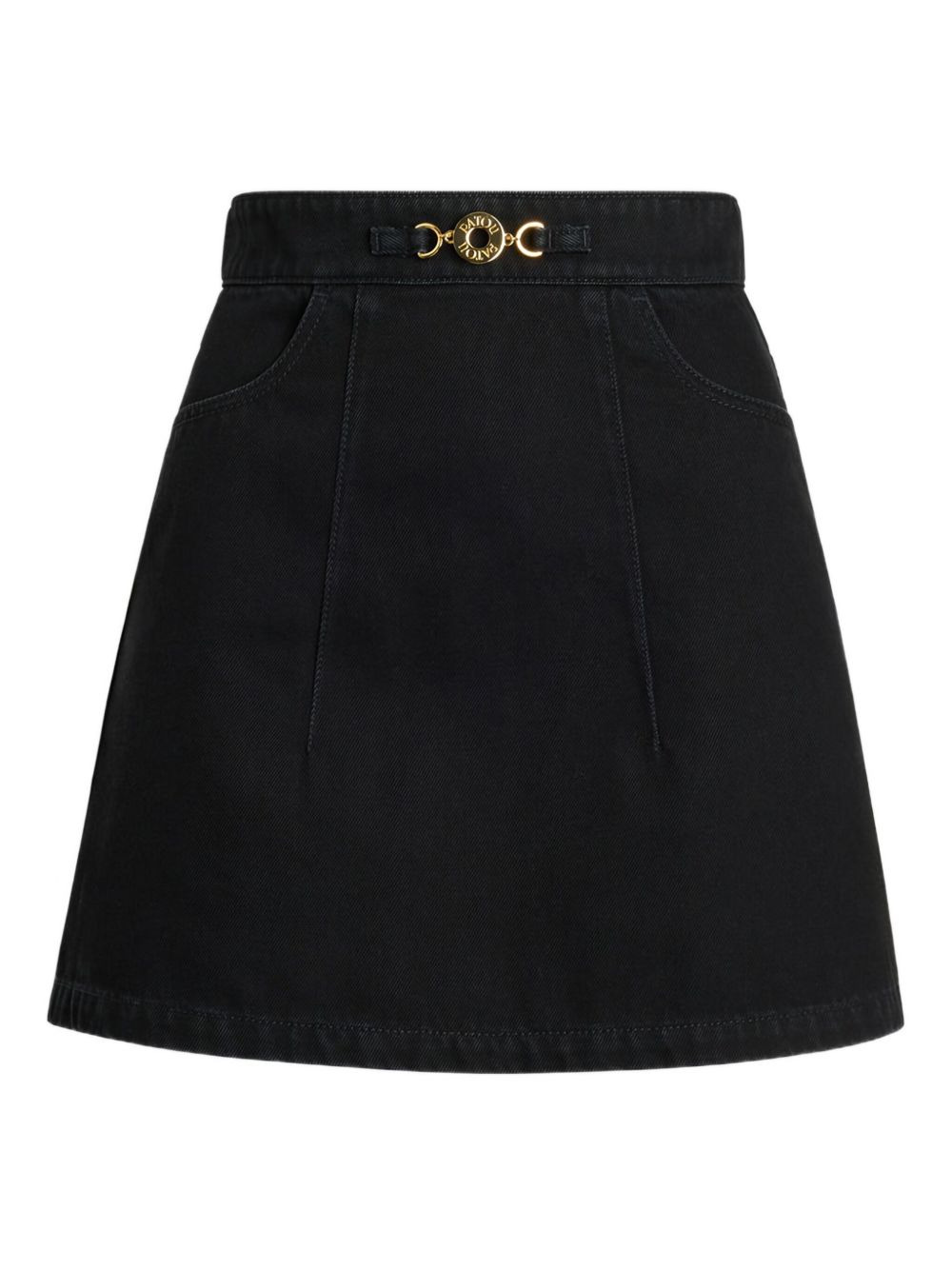 embellished A-line mini skirt Highlights - Black - A-line shape - Organic cotton denim - Hardware embellishment - Side pockets Imported Composition Organic Cotton 100% Washing instructions Machine Wash