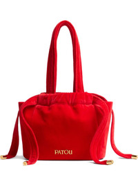 Evening velvet drawstring bag Highlights - Red - Velvet texture - Drawstring closure - Top handles - Gold-tone hardware - Gathered detailing Imported Composition Outer: Cotton 100% SIZE & FIT Measurement HEIGHT 8.46 in(21.5 cm) WIDTH 6.49 in(16.5 cm) HANDLE 17.71 in(45 cm)