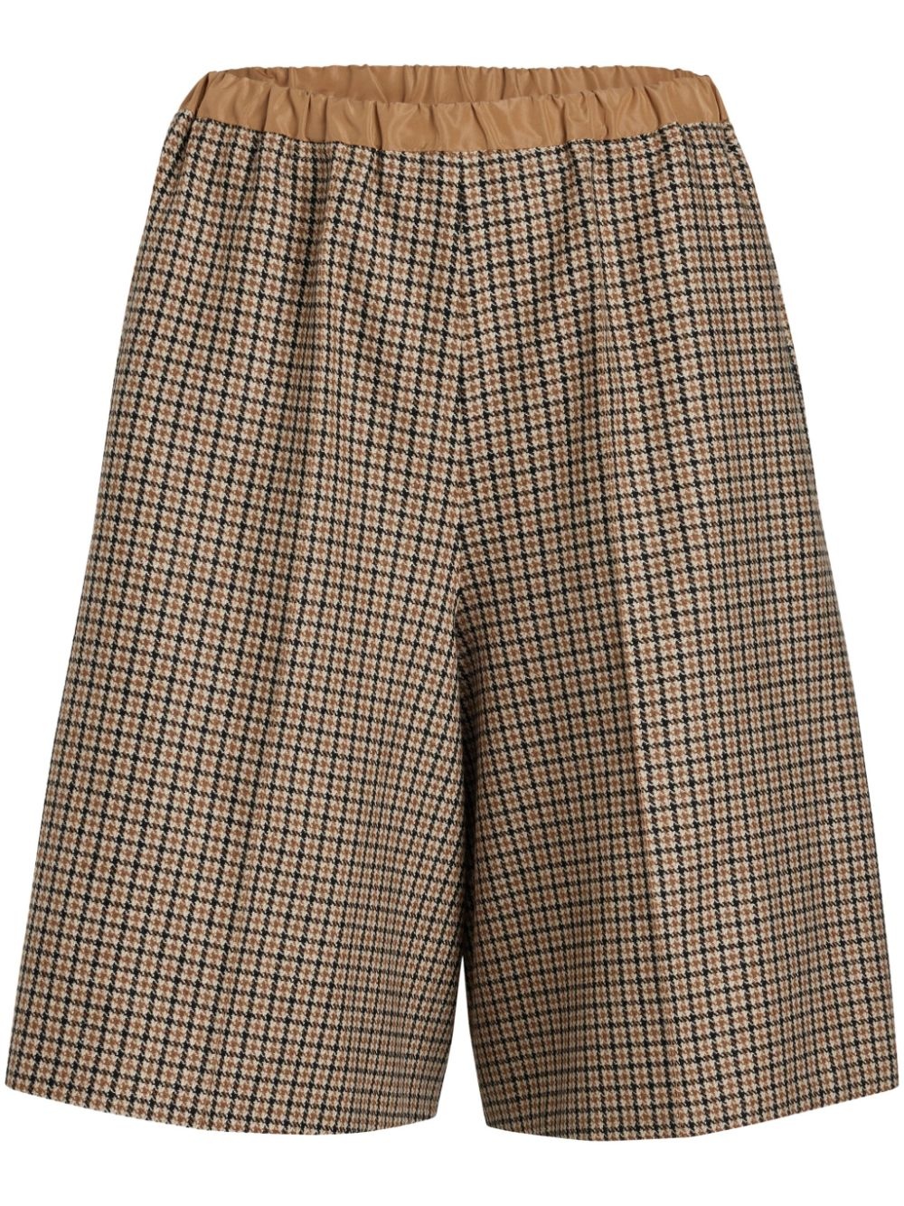 houndstooth-pattern longline shorts Highlights - Brown - Recycled wool - Houndstooth pattern - Pressed crease - Elasticated waistband - Two side inset pockets - Straight hem - Knee-length Imported Composition Recycled Wool 100%