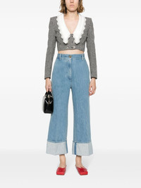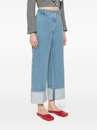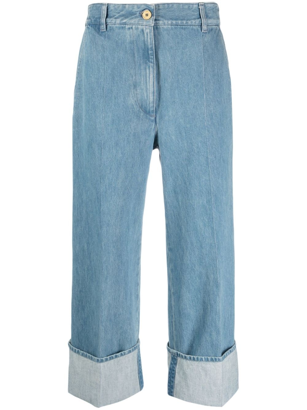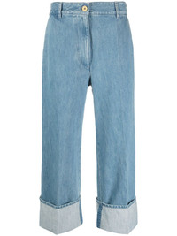 Iconic cuffed jeans Cut to a relaxed straight silhouette, the Iconic jeans from Patou are rendered in a classic medium wash. Sitting low at the waist, they're defined by the bold turn-up cuffs. Highlights - Indigo blue - Cotton blend - Denim - Slip pockets to the sides - Concealed fly and button fastening - Straight leg - Turn-up cuffs Imported Composition Cotton 92%, Polyester 8% SIZE & FIT Model measurements Height 5 ft 10 in(1.79 m) Bust/Chest 32.67 in(83 cm) Hips 34.25 in(87 cm) Waist 24.4 in(62 cm) Measurement FRONT RISE 13.77 in(35 cm) INSIDE LEG 25.98 in(66 cm) HIPS 42.51 in(108 cm) FittingInformation Designed for a straight-leg fit, these jeans allow for a close fit at the waist and an unrestricted and comfortable fit over the leg Cropped in length Sturdy and hard-wearing, this denim piece offers no stretch This piece fits true to size – take your usual size Washing instructions Machine Wash