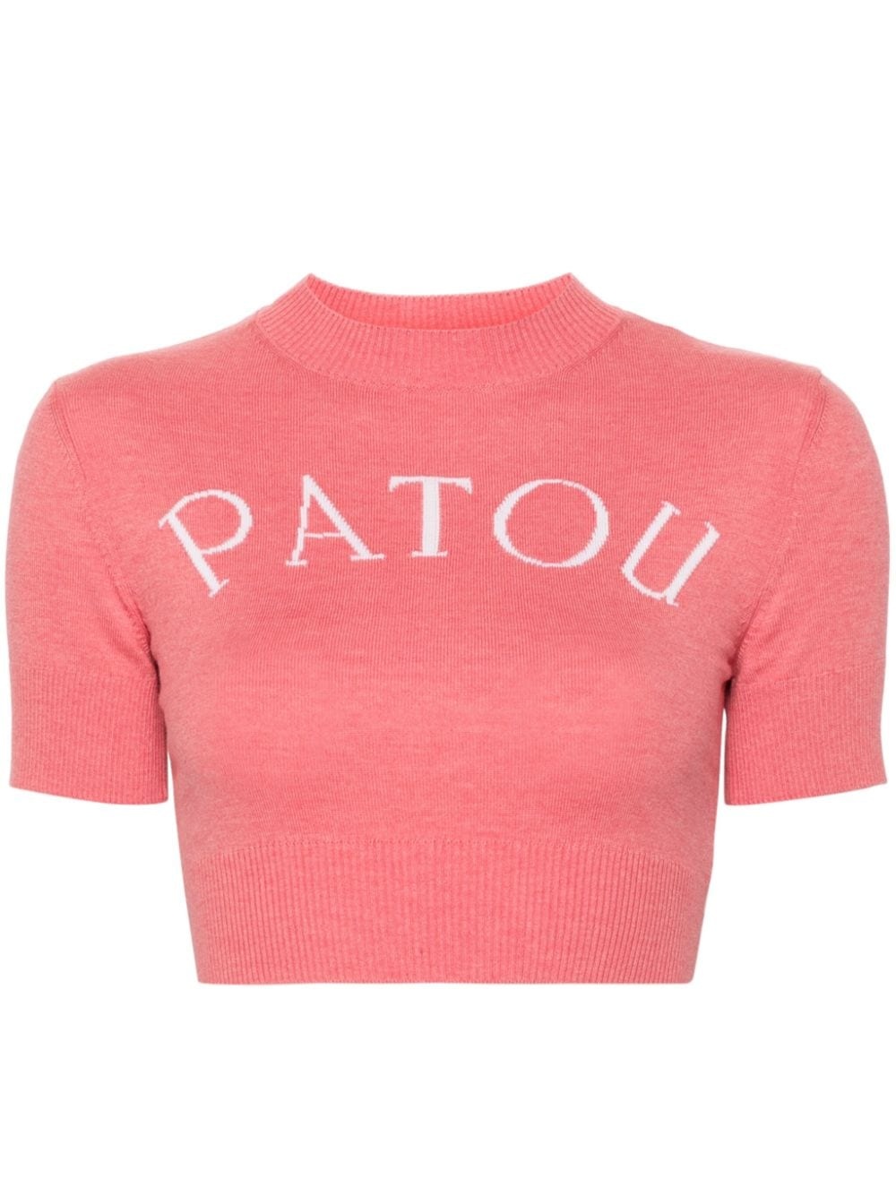 intarsia-knit top Highlights - Pink - Cotton-wool blend - Knitted construction - Melange effect - High neck - Intarsia-knit logo - Short sleeves - Ribbed cuffs and hem - Cropped Imported Composition Cotton 60%, Wool 40% SIZE & FIT Model measurements Height 5 ft 9 in(1.75 m) Bust/Chest 34.64 in(88 cm) Hips 36.61 in(93 cm) Waist 26.37 in(67 cm) FittingInformation Designed for a close fit throughout Cropped in length Made with a midweight knit, this piece offers some stretch This piece fits true to size – take your usual size