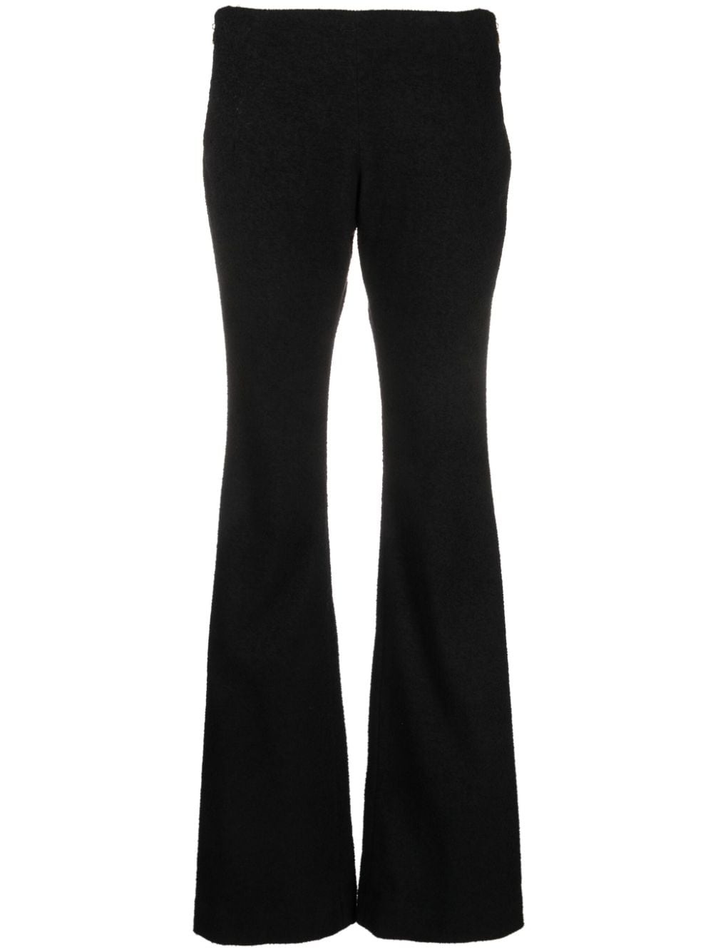 knitted flared trousers Patou is recognised for its tasteful yet distinctive design style. This is shown with these black trousers. Boasting a knitted construction, they feature side zip fastenings and a flared leg. Highlights - Black - Cotton-linen blend - Knitted construction - Flared - Mid-rise - Side zip fastening Imported Composition Cotton 34%, Viscose 21%, Linen/Flax 20%, Polyamide 15%, Polyester 8%, Spandex/Elastane 2% SIZE & FIT Model measurements Height 5 ft 9 in(1.75 m) Bust/Chest 31.88 in(81 cm) Hips 34.64 in(88 cm) Waist 24.4 in(62 cm) FittingInformation Designed with a flared hem, these trousers allow for a close fit at the waist with a slim fit over the leg and widening towards the hem Made from a midweight stretch fabric, this piece offers elasticity and flexibility when worn This piece fits true to size – take your usual size