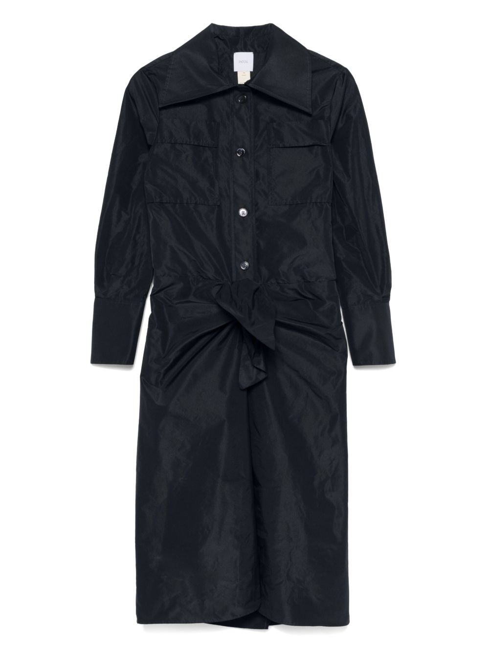 knot-detail dress Highlights - Black - Front button fastening - Two chest flap pockets - Pointed flat collar - Buttoned cuffs Imported Composition Polyester 100% SIZE & FIT Model measurements Height 5 ft 10 in(1.79 m) Bust/Chest 35.43 in(90 cm) Hips 35.03 in(89 cm) Waist 25.19 in(64 cm) FittingInformation Designed for a relaxed fit, this piece allows for comfort and movement when worn Made from a midweight non-stretch fabric Washing instructions Dry Clean Only