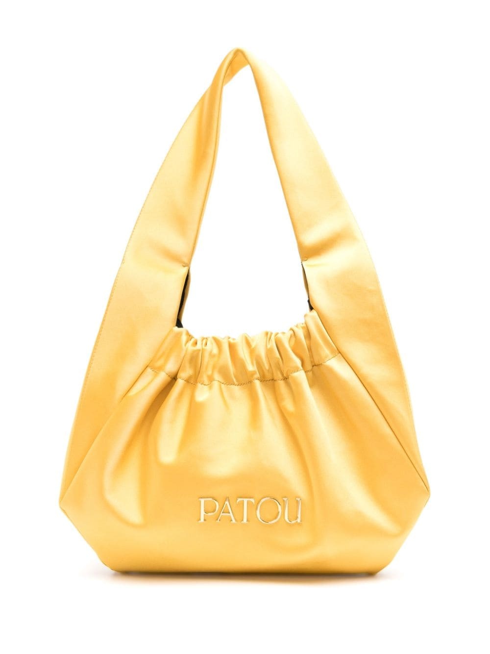 Le Biscuit satin tote bag Patou's affinity for elevated simplicity is captured in the minimalist design of the Le Biscuit bag range. Defined by a satin-finish fabrication and gold-tone logo lettering, this iteration arrives in a butter-yellow hue. Highlights - Butter yellow - Satin weave - Gold-tone logo lettering - Open top - Single flat top handle - Main compartment Imported Composition Outer: Polyester 56%, Cotton 44% SIZE & FIT Model measurements Height 5 ft 10 in(1.78 m) Bust/Chest 33.07 in(84 cm) Hips 36.61 in(93 cm) Waist 24.8 in(63 cm) Measurement DEPTH 1.57 in(4 cm) HANDLE 7.48 in(19 cm) HEIGHT 5.9 in(15 cm) WIDTH 8.66 in(22 cm)