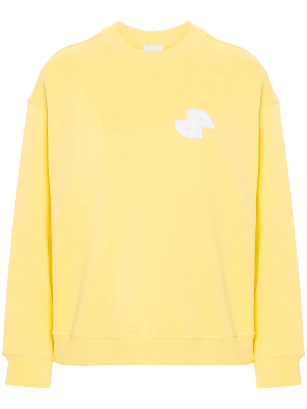 logo-applique cotton sweatshirt Highlights - Banana yellow - Cotton - Jersey texture - Crew neck - Long sleeves - Ribbed cuffs and hem - Applique logo at the chest - Fleece lining - Straight hem Imported Composition Cotton 100%, Polyester 55%, Acrylic 30%, Rayon 15% SIZE & FIT Model measurements Height 5 ft 9 in(1.76 m) Bust/Chest 31.1 in(79 cm) Hips 36.61 in(93 cm) Waist 24.8 in(63 cm) FittingInformation Designed for a relaxed fit, this piece allows for comfort and movement when worn Made from a midweight non-stretch fabric, this piece offers minimal elasticity when worn This piece fits true to size – take your usual size Washing instructions Machine Wash