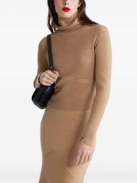 ribbed roll-neck sweater Highlights - Brown - Beige - Applique logo - Ribbed knit - High neck - Long sleeves - Straight hem Imported Composition Merino 100%