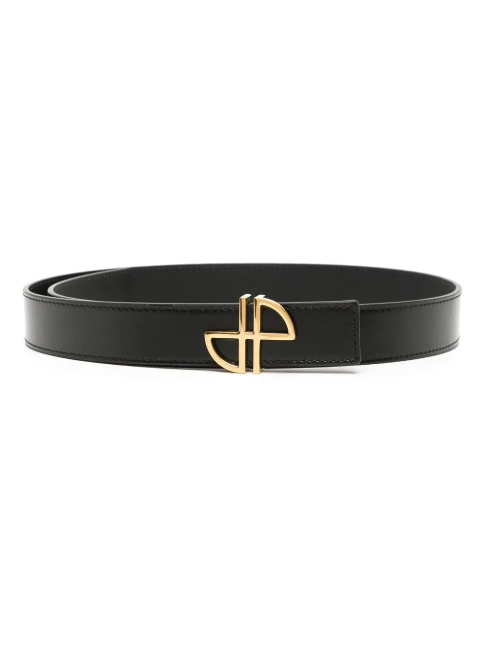 logo-buckle leather belt Highlights - Black - Calf leather - Smooth grain - Logo-buckle fastening - Gold-tone hardware - Adjustable fit - Punched holes Imported Composition Calf Leather 100% SIZE & FIT Measurement Maximum Length 34.64 in(88 cm) Minimum Length 30.7 in(78 cm) TOTAL LENGTH 38.18 in(97 cm) WIDTH 1.18 in(3 cm)