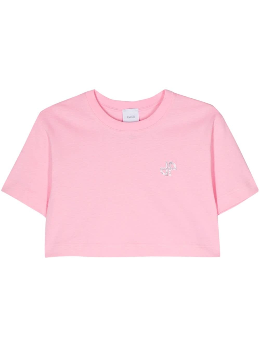 logo-embellished cropped T-shirt Highlights - Bubblegum pink - Cotton - Soft jersey - Round neck - Short sleeves - Embroidered logo to the front - Crystal embellishment - Cropped - Straight hem Imported Composition Cotton 100%, glass 100%