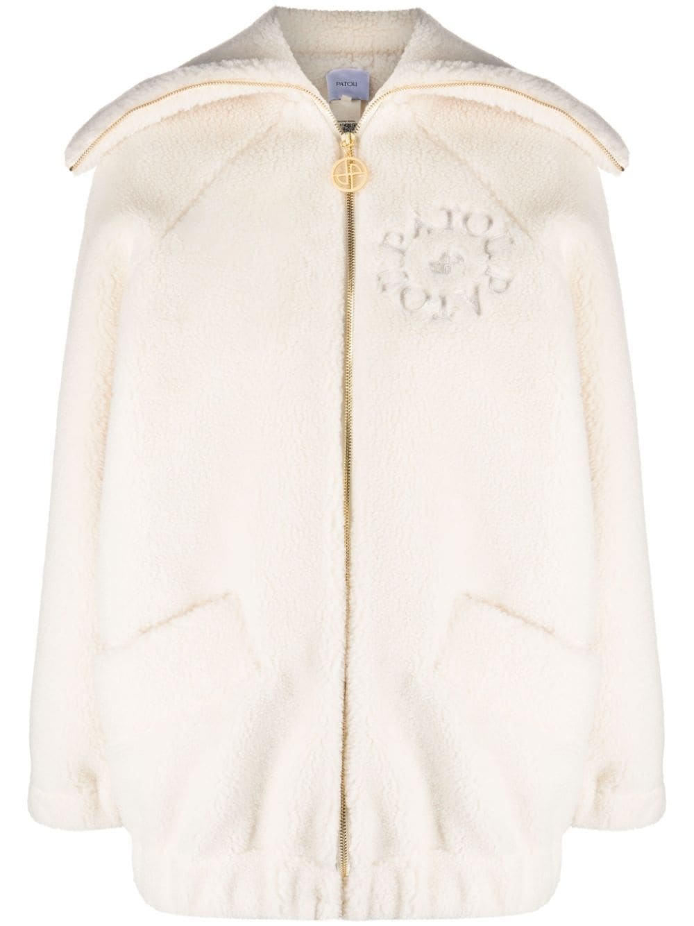 logo-embroidered fleece jacket Patou exhibits a sophisticated take on comfort dressing with this fleece jacket. Arriving in an Avalance white hue, it boasts a silhouette-defining spread collar and is finished with an embroidered logo at the chest. Highlights - Off-white - Fleece texture - Spread collar - Front zip fastening - Gold-tone hardware - Logo charm - Embroidered logo at the chest - Long sleeves - Two side inset pockets - Straight hem Imported Composition Polyester 82%, Cotton 18% SIZE & FIT Model measurements Height 5 ft 10 in(1.78 m) Bust/Chest 31.49 in(80 cm) Hips 37 in(94 cm) Waist 23.62 in(60 cm) Measurement CHEST 42.51 in(108 cm) SLEEVE LENGTH 29.13 in(74 cm) LENGTH 30.31 in(77 cm) FittingInformation Designed to be unstructured, offering a loose fit throughout The elasticated hem allows for movement and a comfortable fit Made from a midweight non-stretch fabric, this piece offers minimal elasticity when worn This piece fits true to size – take your usual size Washing instructions Dry Clean Only