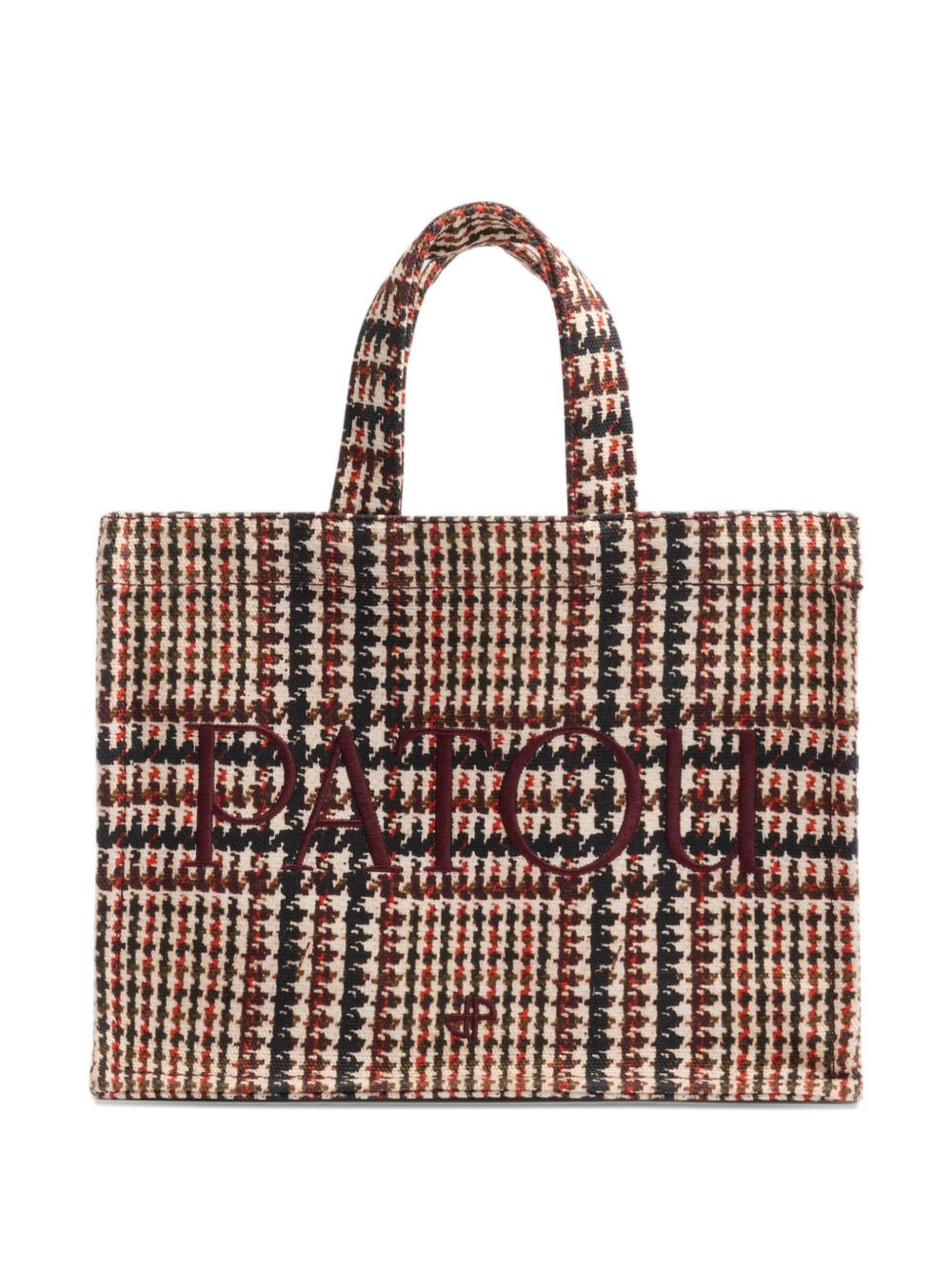 logo-embroidered houndstooth tote bag