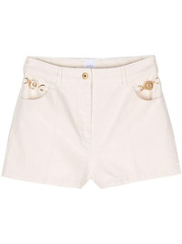 logo-engraved medallion cotton shorts Highlights - Ecru - Cotton - Twill weave - Belt loops - Two rounded pockets to the sides - Logo-engraved gold-tone medallion to the side - Thigh-length - Tonal embroidered logo to the rear - Gold-tone logo-debossed button - Front concealed zip-fly and button fastening Imported Composition zamac 100%, Cotton 100%