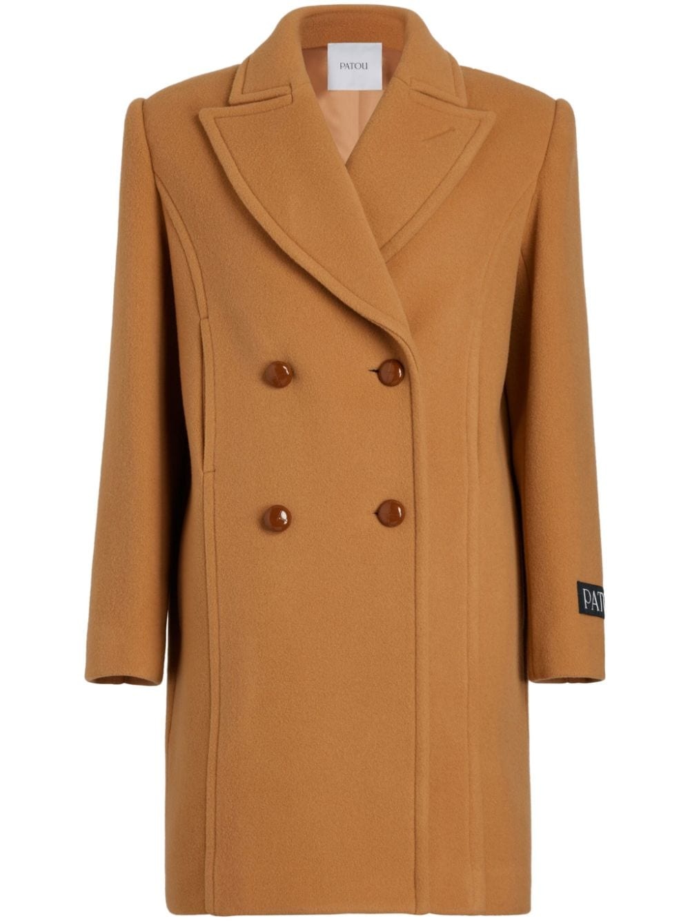 double-breasted coat Highlights - Butterscotch brown - Wool-cashmere blend - Logo patch at the sleeve - Notched lapels - Double-breasted button fastening - Long sleeves Imported Composition Outer: Wool 72%, Nylon 25%, Cashmere 3% Lining: Viscose 100%