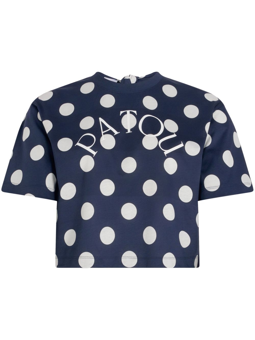 logo-print split-back T-shirt Highlights - Navy blue - Rear tie fastening - Logo print at the chest - Short sleeves - Rear slit Imported Composition Organic Cotton 100%