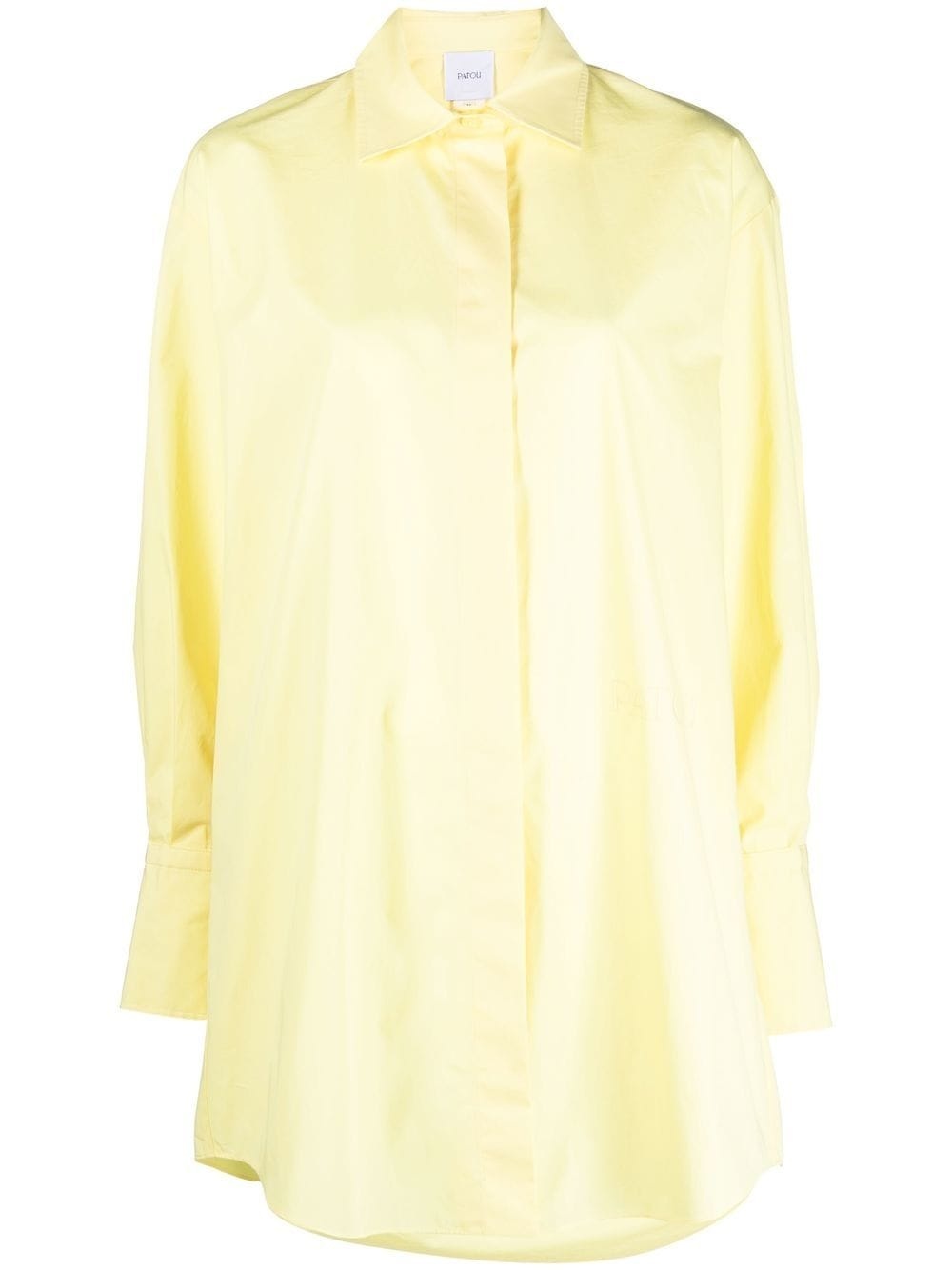 long-sleeve shirt dress This shirt dress from Patou arrives in a light yellow hue and is paired with embroidered logo detailing at the front for a branded finish. Imported Composition Cotton 100% SIZE & FIT Model measurements Height 5 ft 11 in(1.8 m) Bust/Chest 31.49 in(80 cm) Hips 36.22 in(92 cm) Waist 25.59 in(65 cm) FittingInformation This piece fits true to size. We recommend you get your regular size Cut for a loose fit Made with a mid-weight non-stretch fabric Washing instructions Machine Wash