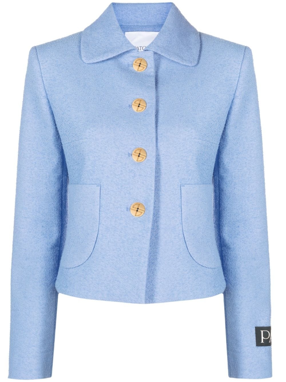 long-sleeve tailored jacket Patou is known for an elegant yet effortless design style. Reflected on this single-breasted jacket, the garment features a classic tailored construction and a logo patch at the sleeve. Highlights - Blue - Notched lapels - Long sleeves - Logo patch at the sleeve - Front button fastening Imported Composition Cotton 34%, Viscose 21%, Linen/Flax 20%, Polyamide 15%, Polyester 8%, Elastane 2% SIZE & FIT Model measurements Height 5 ft 10 in(1.78 m) Bust/Chest 32.67 in(83 cm) Hips 35.43 in(90 cm) Waist 23.22 in(59 cm) Measurement CHEST 32.28 in(82 cm) SLEEVE LENGTH 24.4 in(62 cm) LENGTH 20.47 in(52 cm) FittingInformation Designed for a slim fit that sits just away from the body offering a close yet comfortable fit Made from a midweight fabric This piece fits true to size – take your usual size Washing instructions Dry Clean Only