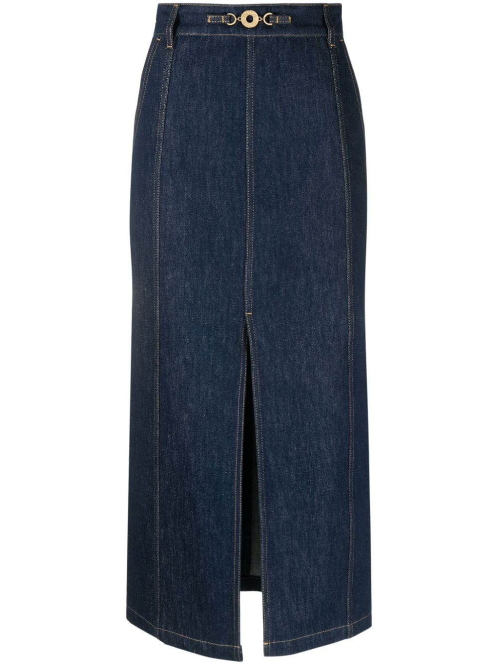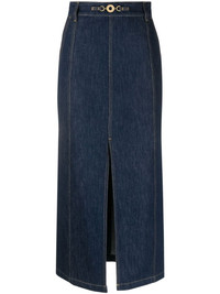 slit-detail organic-denim midi skirt