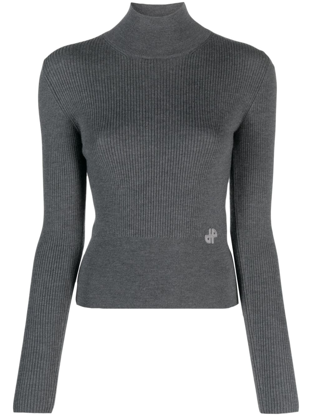 merino-blend mock-neck jumper Patou showcases the art of simplicity with this ribbed knit top. Crafted from a merino wool blend, it's embroidered with the signature moniker on the side. Highlights - Grey - Merino wool blend - Ribbed knit - Embroidered logo to the side - Mock neck - Long sleeves Imported Composition Merino 88%, Polyamide 11%, Elastane 1% SIZE & FIT Model measurements Height 5 ft 10 in(1.79 m) Bust/Chest 33.07 in(84 cm) Hips 35.82 in(91 cm) Waist 24.01 in(61 cm) FittingInformation Designed for a close fit throughout Made with a midweight knit, this piece offers some stretch This piece fits true to size – take your usual size Washing instructions Hand Wash