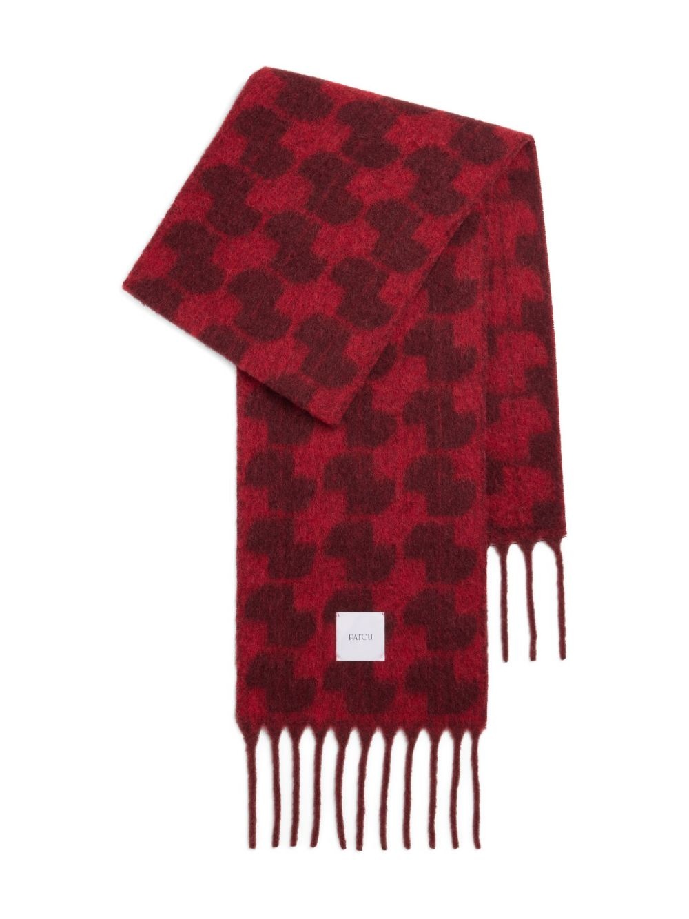 monogram fringed scarf Highlights - Dark red - Fringed edges - Woven label Made in Italy Composition Alpaca Wool 80%, Polyamide 20% SIZE & FIT Measurement LENGTH 85.03 in(216 cm) WIDTH 11.81 in(30 cm) Washing instructions Hand Wash