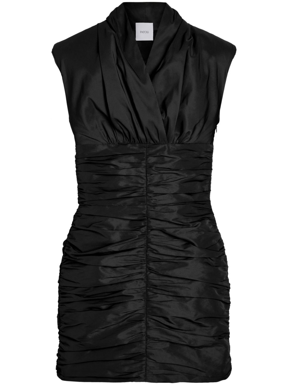 open-back mini dress Highlights - Black - Recycled polyester - Wrap design - Ruched detailing - Open back - Fitted silhouette - V-neck - Side zip fastening - Sleeveless - Thigh-high Imported Composition Recycled Polyester 100%