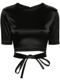 open-back satin T-shirt Highlights - Black - Satin finish - Round neck - Short sleeves - Open back - Twist detailing - Rear self-tie fastening Imported Composition Acetate 48%, Polyamide 45%, Lyocell 7% Washing instructions Dry Clean Only