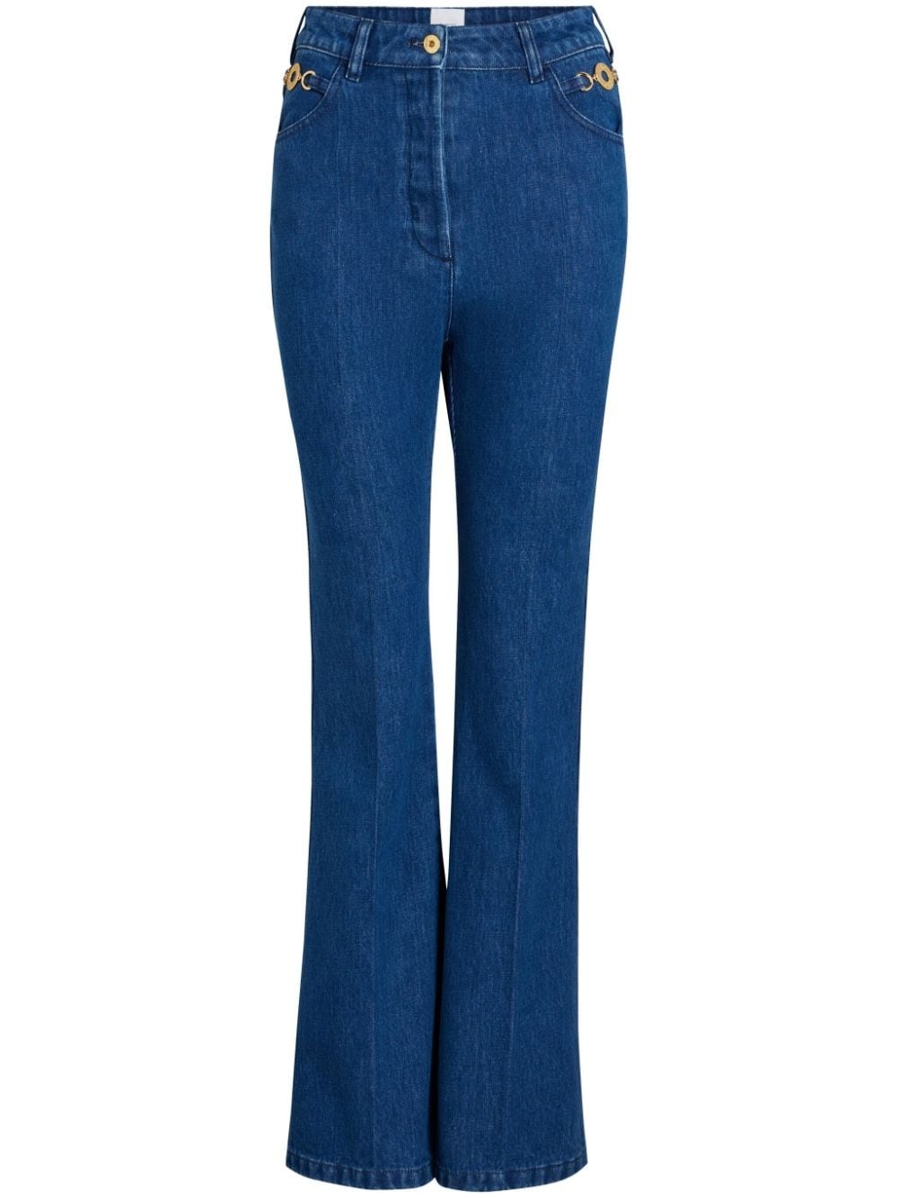 organic-cotton flared jeans Highlights - Blue - Organic cotton - Belt loops - Slip pockets to the sides - Front button and zip fastening Imported Composition Outer: Organic Cotton 92%, Polyester 8% Lining: Cotton 100%