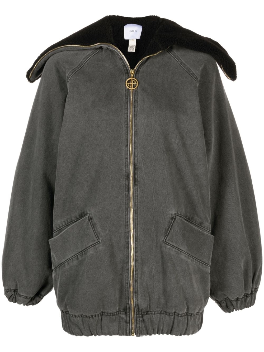 oversized denim jacket The splaying shawl collar on this denim bomber jacket from Patou emphasises the relaxed feel. Contrasting its denim construction, a faux-shearling lining adds a comforting quality. Highlights - Anthracite grey - Cotton blend - Denim - Tonal stitching - Cocoon design - Signature jp puller - Embroidered logo to the rear - Faux-shearling long collar - Front zip fastening - Long raglan sleeves - Elasticated cuffs - Two front welt pockets - Elasticated hem - Faux-shearling lining Imported Composition Cotton 68%, Polyester 32% SIZE & FIT Model measurements Height 5 ft 9 in(1.76 m) Bust/Chest 33.07 in(84 cm) Hips 34.64 in(88 cm) Waist 25.59 in(65 cm) FittingInformation Designed for an oversized fit, offering additional room throughout The elasticated hem allows for movement and a comfortable fit Made from a midweight non-stretch fabric This piece fits true to size – take your usual size